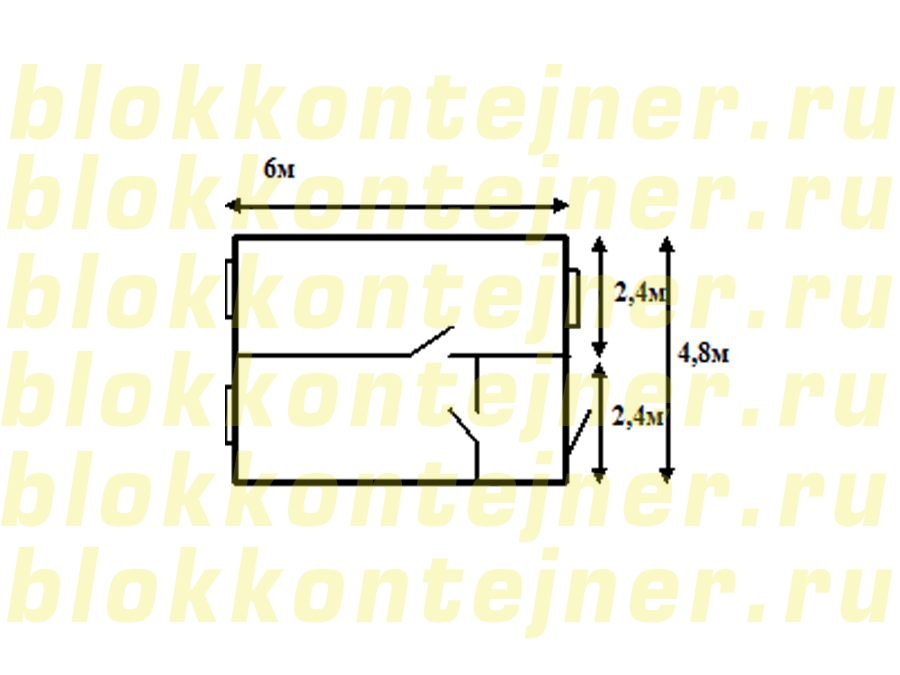 Модульное здание 6,0*4,8*2,5 м.-1шт.,  состоит из 2-х  БК  6,0*2,4*2,5 м.